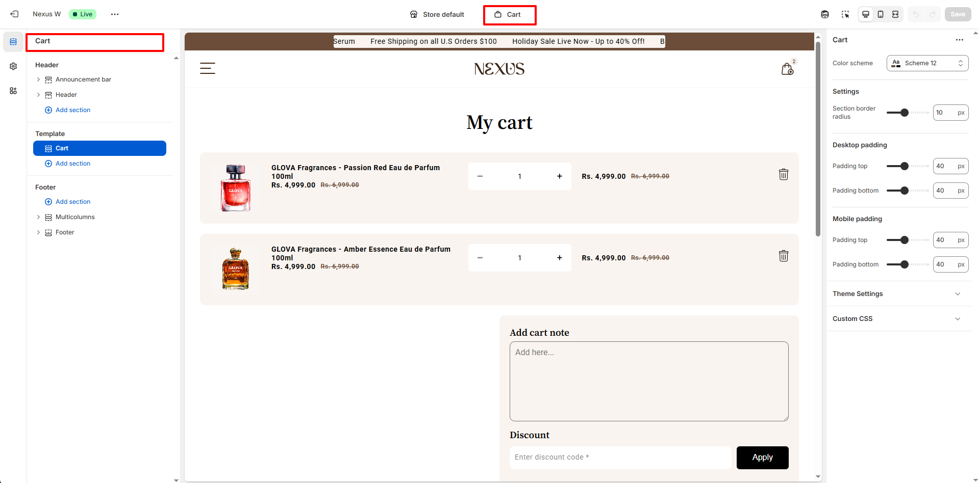 - Open the Theme editor, and select Cart from the dropdown at the top.