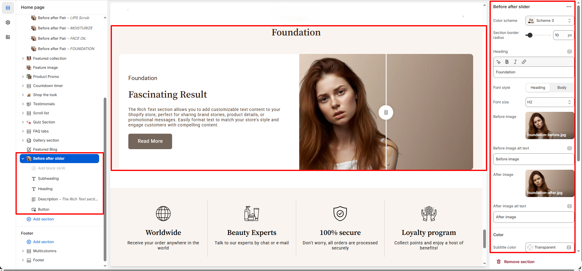 How to Set Up the Before After Slider Section :