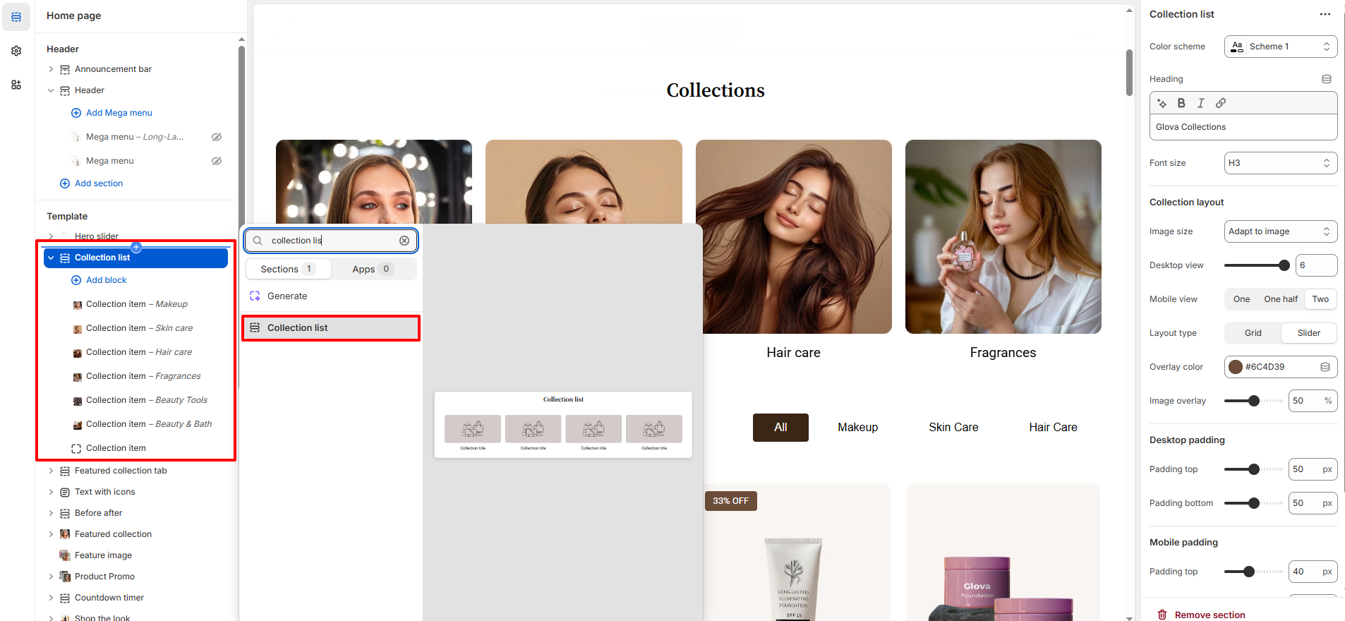 The Collection List section in Nexus lets you display multiple product collections in a sleek grid or carousel layout.