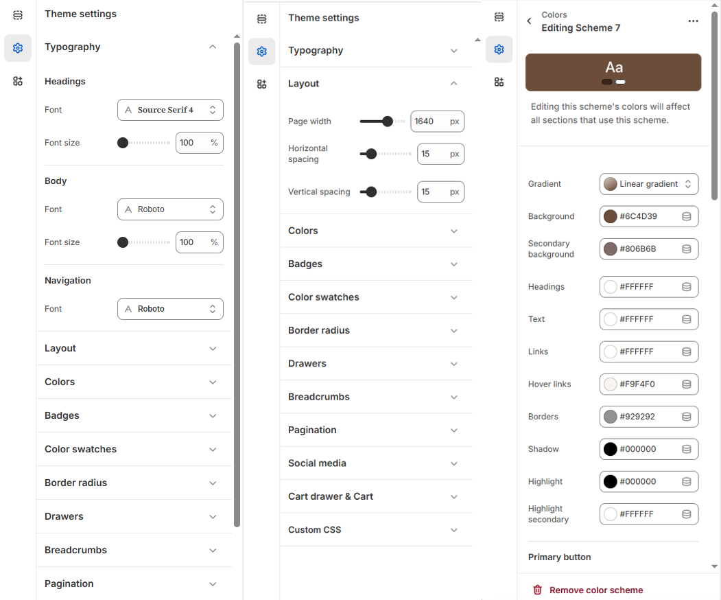 - Colors: Personalize your store’s primary, secondary, and background colors to match your brand aesthetic.